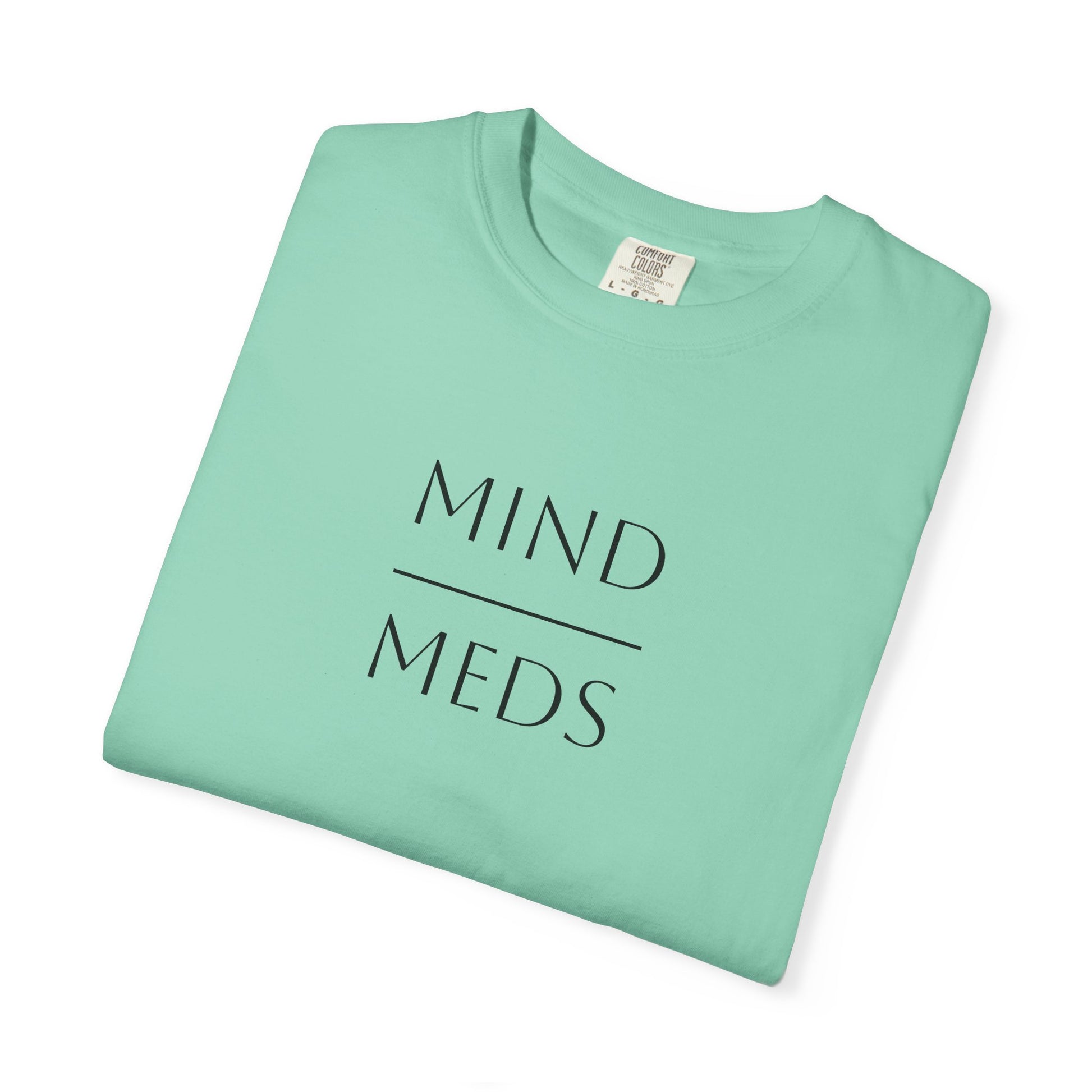 This Mind Over Meds t-shirt is made with high-quality Comfort Colors fabric for a soft feel and long-lasting wear. The relaxed fit and classic crew neckline make it perfect for casual or semi-formal settings, adding a touch of comfort to any outfit. Ideal for adults looking for a comfortable and stylish tee. Perfect for mental health awareness events, mindful living advocates, and everyday wear.